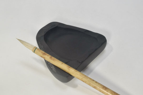 板硯は墨池のない硯です。水滴で水を数滴落として墨をおろします。